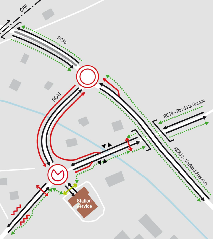 Mit dieser Massnahme soll der Verkehr zwischen der Route de la Gemmi und der Route du Simplon (Viadukt) durch eine Fahrspurverdoppelung und einen Bypass zu den Hauptverkehrszeiten verflüssigt werden. Die Arbeiten in der 20-monatigen Bauzeit werden ohne eine Vollsperrung des Verkehrs auskommen. Die Baukosten belaufen sich auf 3 Millionen Franken.